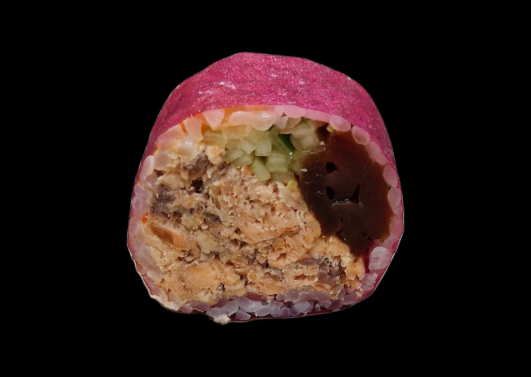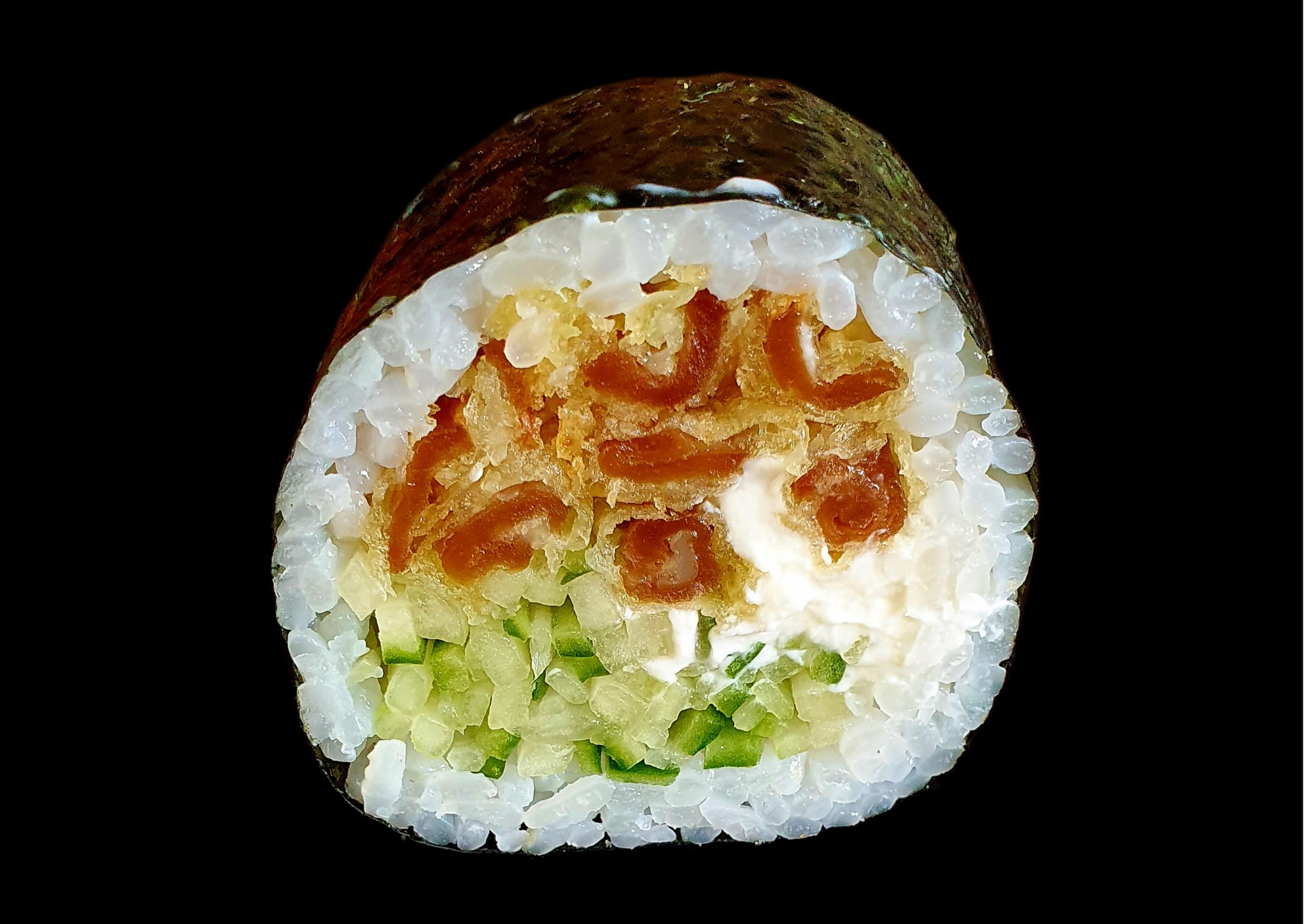 6 x futomaki tatar z łososia posypany chrustem z pora