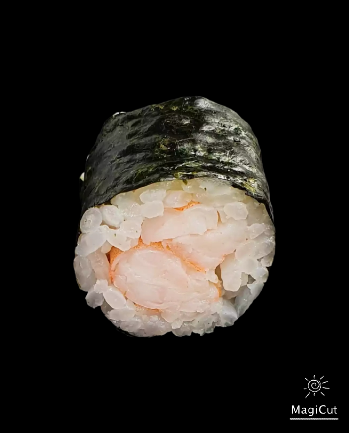 6 x futomaki łosoś pieczony z sosem limonkowo-imbirowym posypane prażonymi migdałami