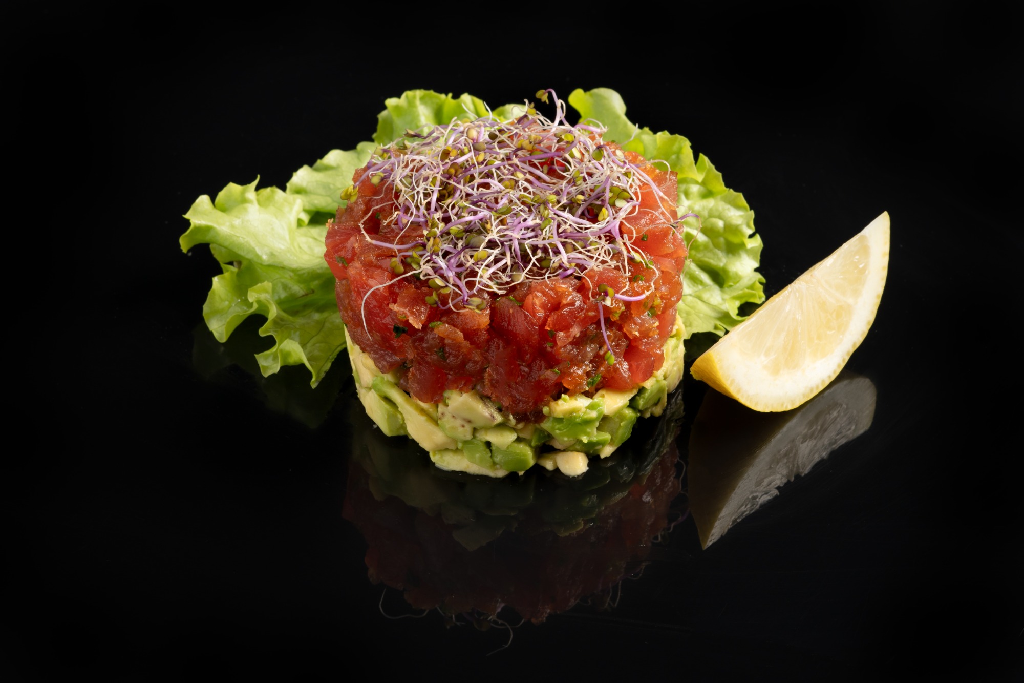 tuńczyk, łosoś opalany, ogórek, oshinko, sos