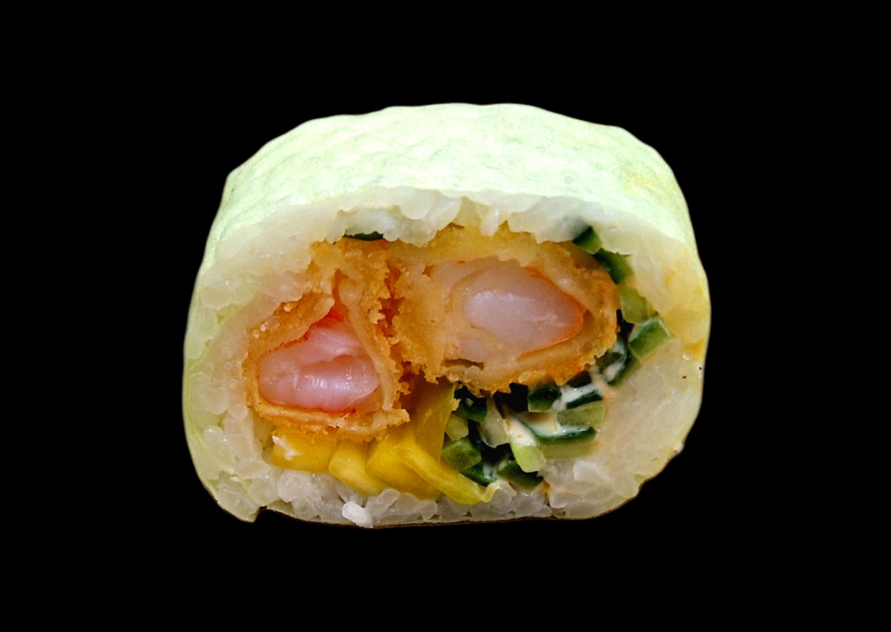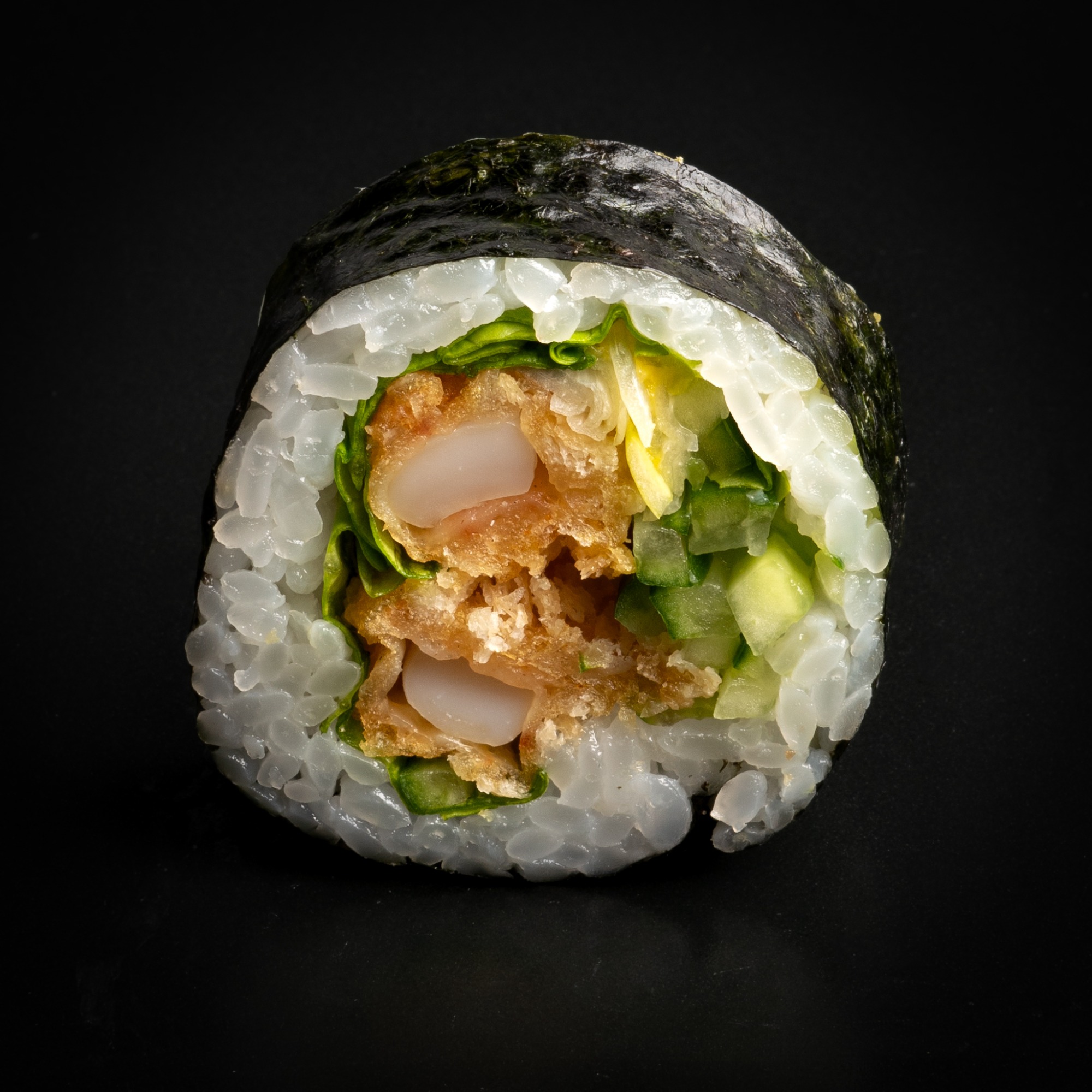 8 x uramaki krewetka w tempurze z sosem jalapeno i wiórkami kokosowymi